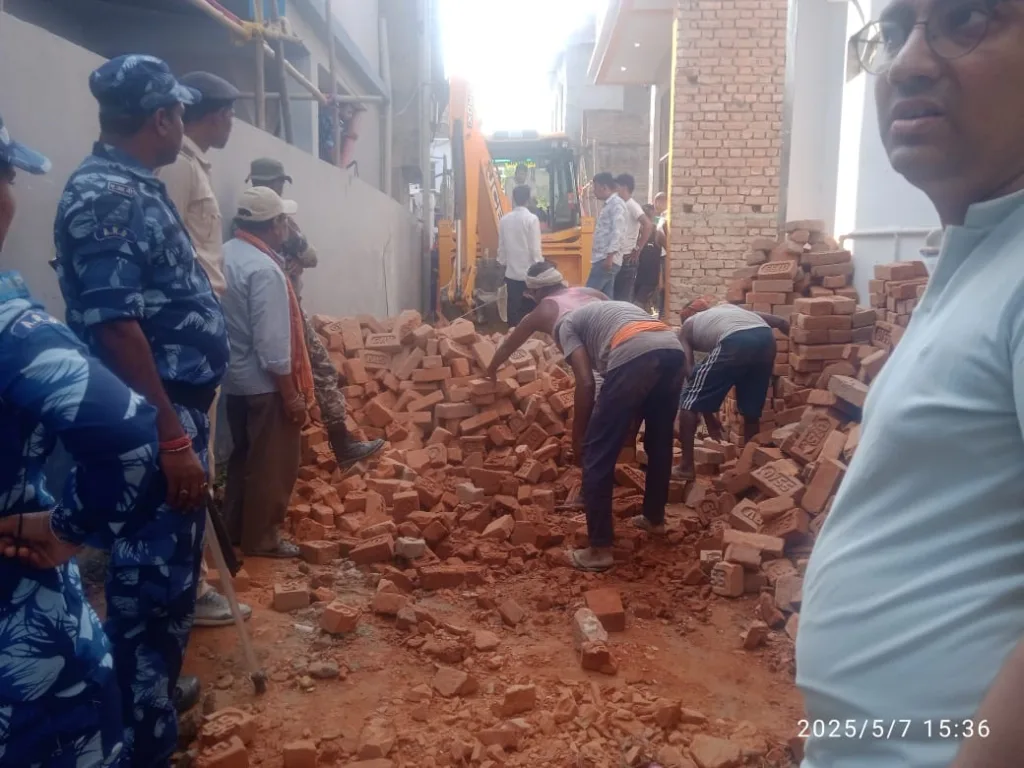 मोतिहारी शहर से सटे नगर निगम क्षेत्र रघुनाथपुर वार्ड 29 मे नवल पान दुकान के सामने स्थित सड़क पर दीवाल जोड़कर किये गए सड़क बंद को सीओ संतोष कुमार व रघुनाथपुर थानाध्यक्ष विकास कुमार पासवान भारी पुलिस बल के साथ अतिक्रमण स्थल पर पहुंच बुलडोजर से सड़क अतिक्रमण को हटवाया।
