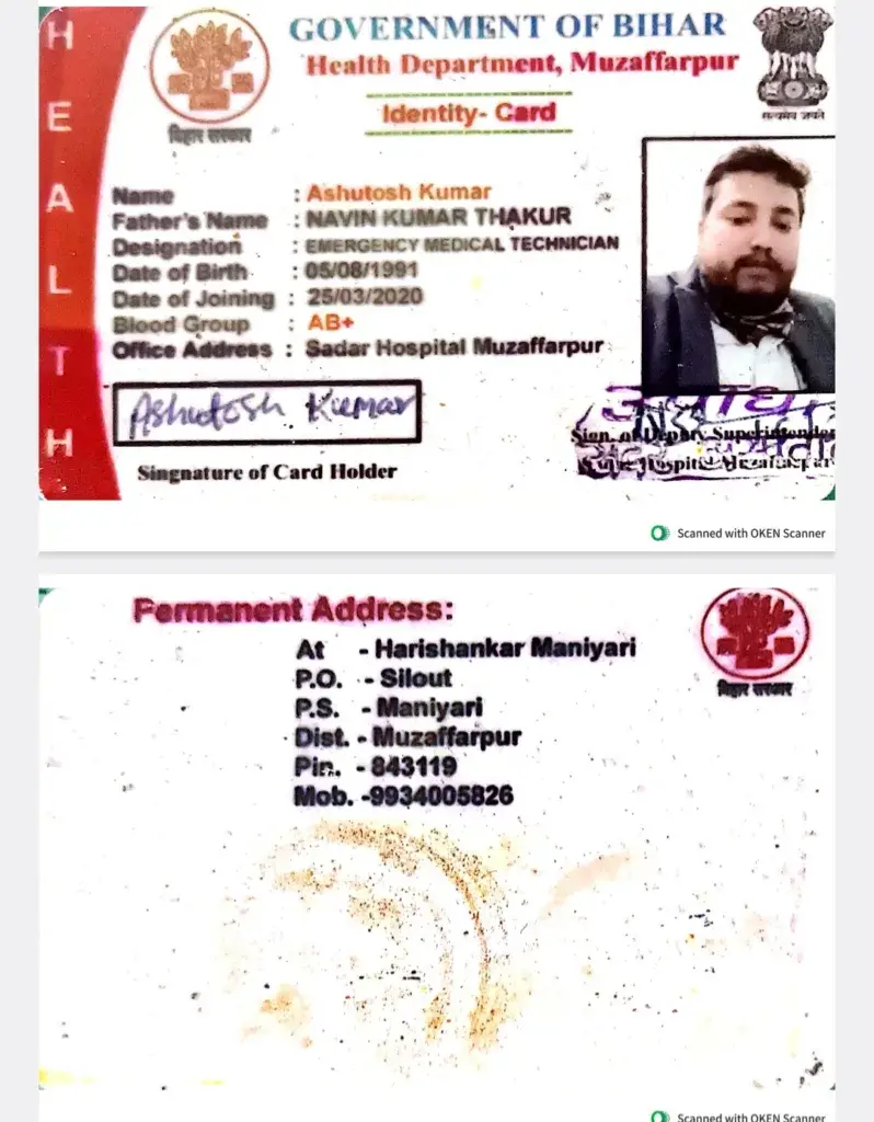 – एम्बुलेंस चालक के पास से मिला मुजफ्फरपुर सदर अस्पताल का पहचाना पत्र